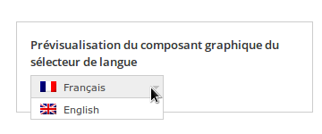 Des sélecteurs de langues s'affichent autant dans la partie d'administration du site que dans la partie publique (si activé), permettant de basculer rapidement vers la traduction d'un contenu.